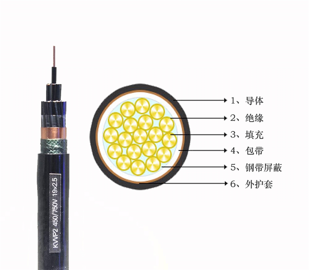字母含義:K:控制電纜系列代號(hào);V:聚氯乙烯絕緣;V:聚氯乙烯護(hù)套;P:編織屏蔽.P2:銅帶屏蔽; 產(chǎn)品名稱(chēng):銅芯聚氯乙烯絕緣護(hù)套銅帶鋼帶屏蔽控制電纜 額定電壓:450/750V 產(chǎn)品特性:電纜的長(zhǎng)期工作溫度應(yīng)不超過(guò)70℃、耐潮濕、能承受中等的機(jī)械應(yīng)力、具有較強(qiáng)的抗電磁干擾能力. 產(chǎn)品用途:電磁干擾環(huán)境中控制、監(jiān)控回路及配電裝置中信號(hào)傳輸、控制及測(cè)量的連接、電器儀表、自動(dòng)化設(shè)備、成套控制柜、機(jī)械工程、照明工程等固定敷設(shè)的場(chǎng)合。 ' />